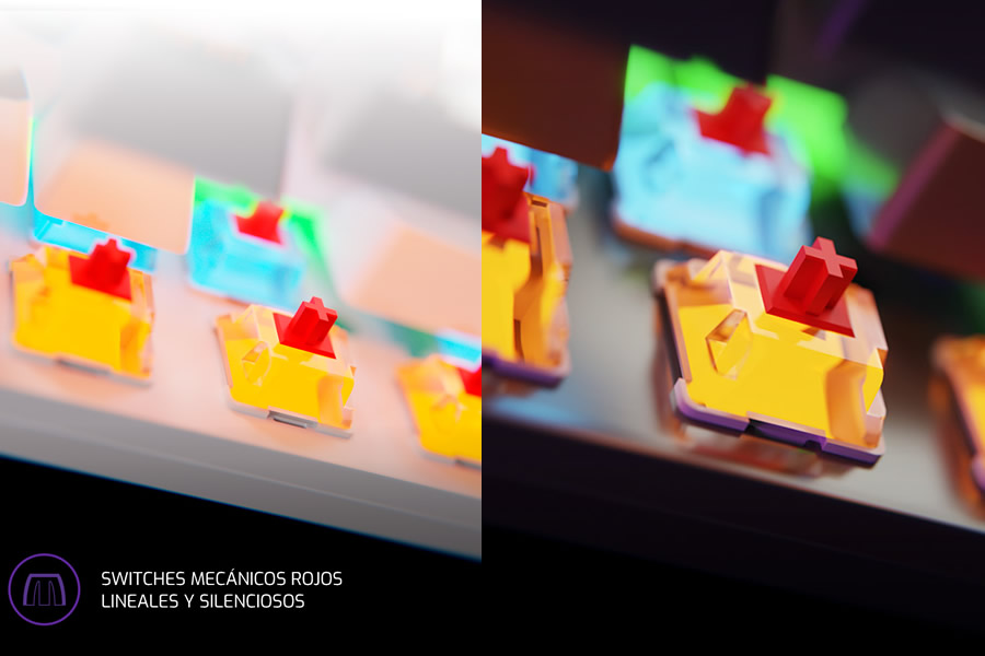 Este modelo ofrece 25 teclas con sistema anti-ghosting, asegurando la correcta ejecución de atajos y comandos complejos. Sus switches mecánicos rojos lineales y silenciosos garantizan rapidez en cada pulsación, perfectos para largas sesiones de juego o trabajo creativo sin distracciones.