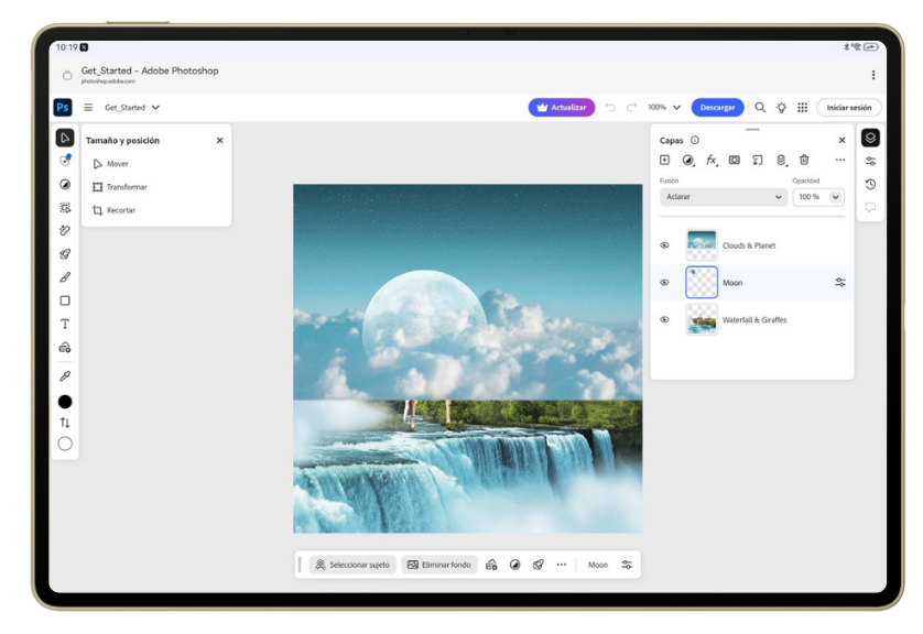 Para quienes trabajan con edición de imágenes, Photoshop sigue siendo una herramienta insustituible. Y aunque no hay una app nativa para HarmonyOS, puedes acceder a su versión online.