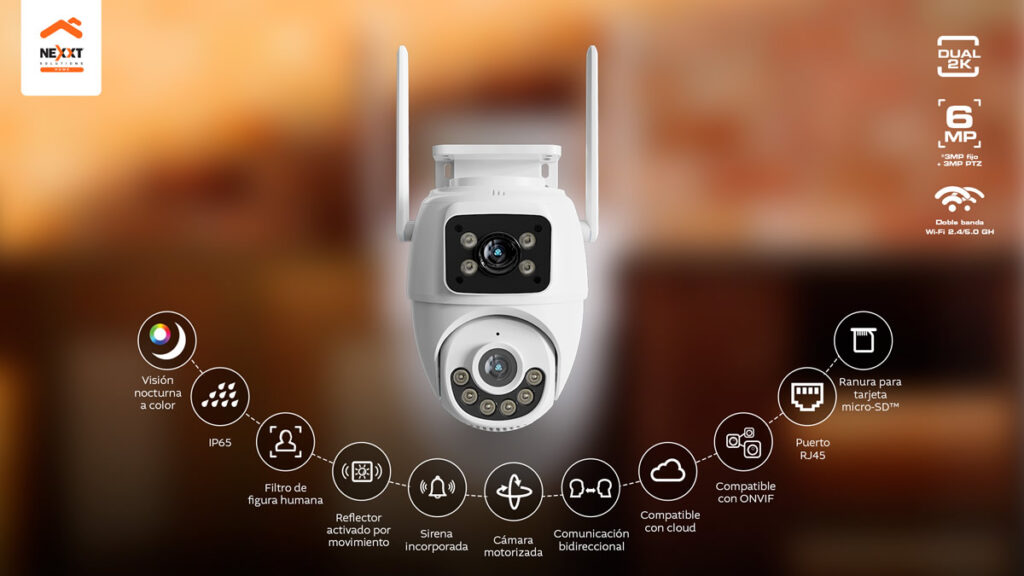 Nexxt Solutions Home anunció la llegada al mercado chileno de su nueva Cámara inteligente Wi-Fi PTZ de doble lente para exteriores (NHC-OP30DL), ampliando su portafolio de soluciones de conectividad y domótica.