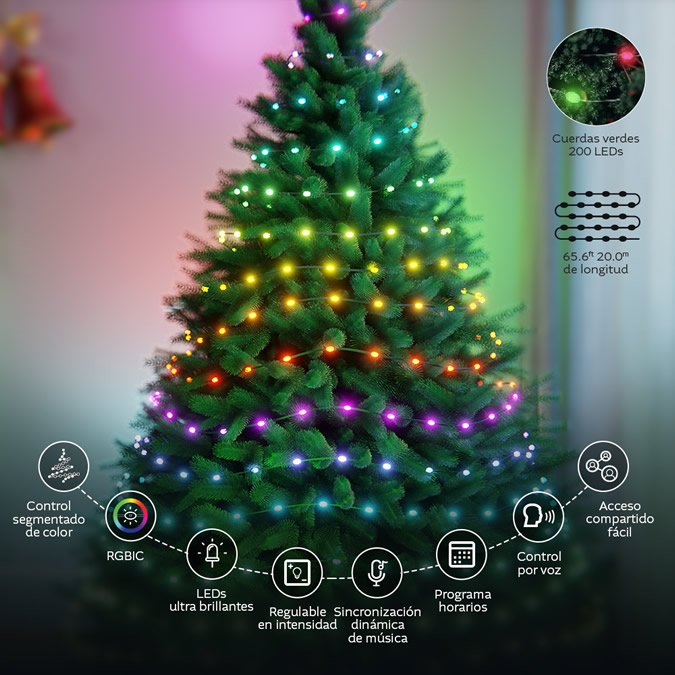 “Este set incluye 20 metros de cinta y 200 LEDs súper brillantes, ideales tanto para árboles grandes como para exteriores o terrazas”, explicó Merlo. “La tecnología RGBIC permite que diferentes secciones de la cinta muestren colores simultáneamente, logrando efectos fluidos, vibrantes y totalmente dinámicos. Entre las 40 escenas preconfiguradas y las opciones de personalización desde la aplicación, cada usuario puede crear ambientes únicos”.