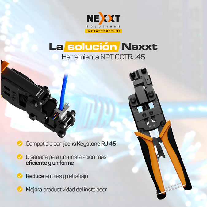 “QuickTerm incorpora elementos diseñados para obtener terminaciones de nivel profesional. Es completamente compatible con los keystone jacks Nexxt CAT5E y CAT6, lo que garantiza una integración total con las soluciones ya utilizadas por nuestros clientes. Incluye un marco de acero tratado térmicamente con acabado en óxido negro para una mayor vida útil, además de un mango ergonómico que facilita largas jornadas de instalación sin fatiga.”