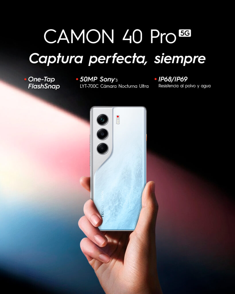 Tecno Mobile anunció la llegada a Chile de su más reciente modelo de gama media-alta, el Camon 40 Pro 5G, un smartphone que combina fotografía de alto nivel, gran desempeño y conectividad de última generación, pensado para quienes buscan un dispositivo premium sin pagar precios elevados.